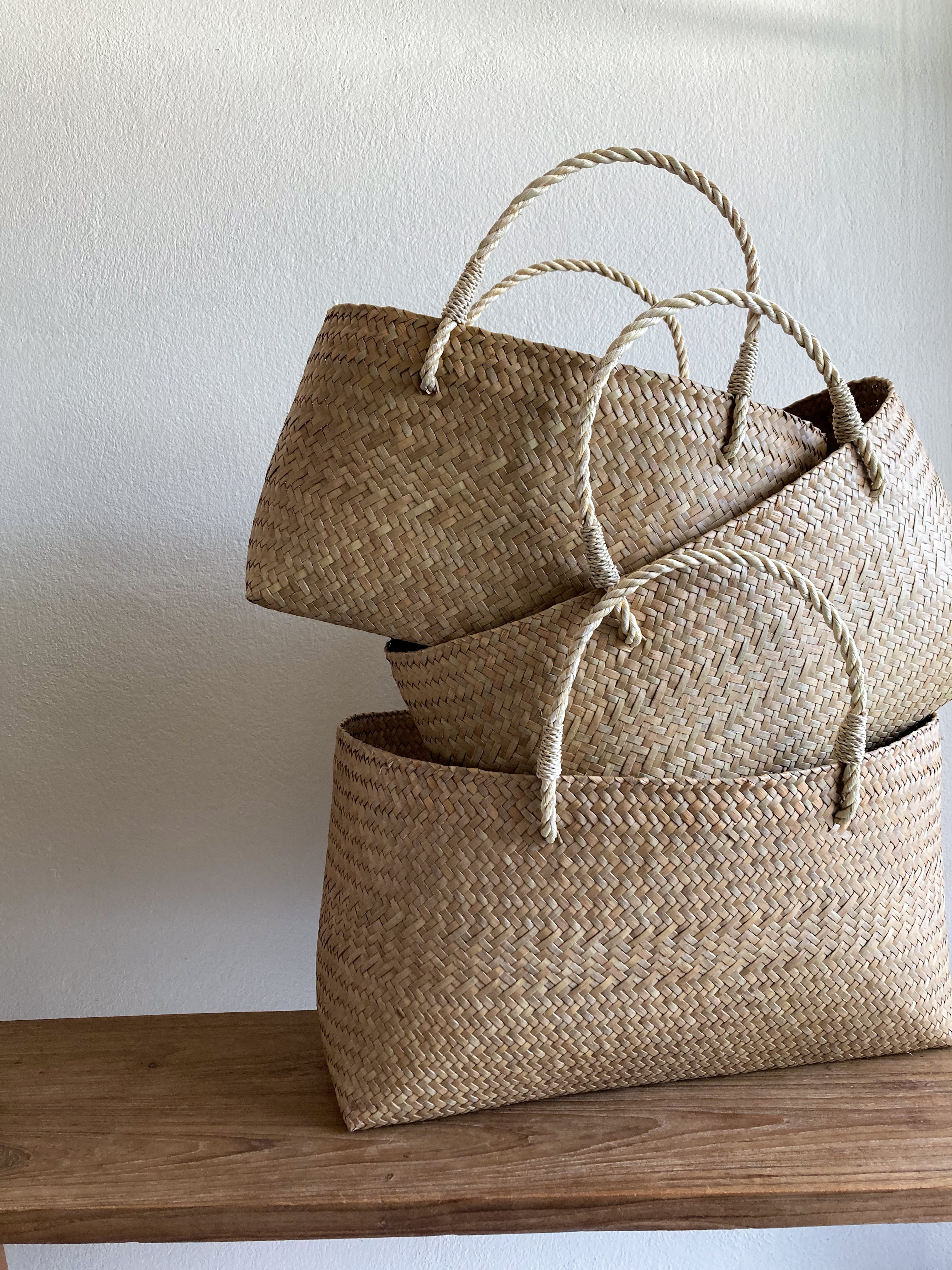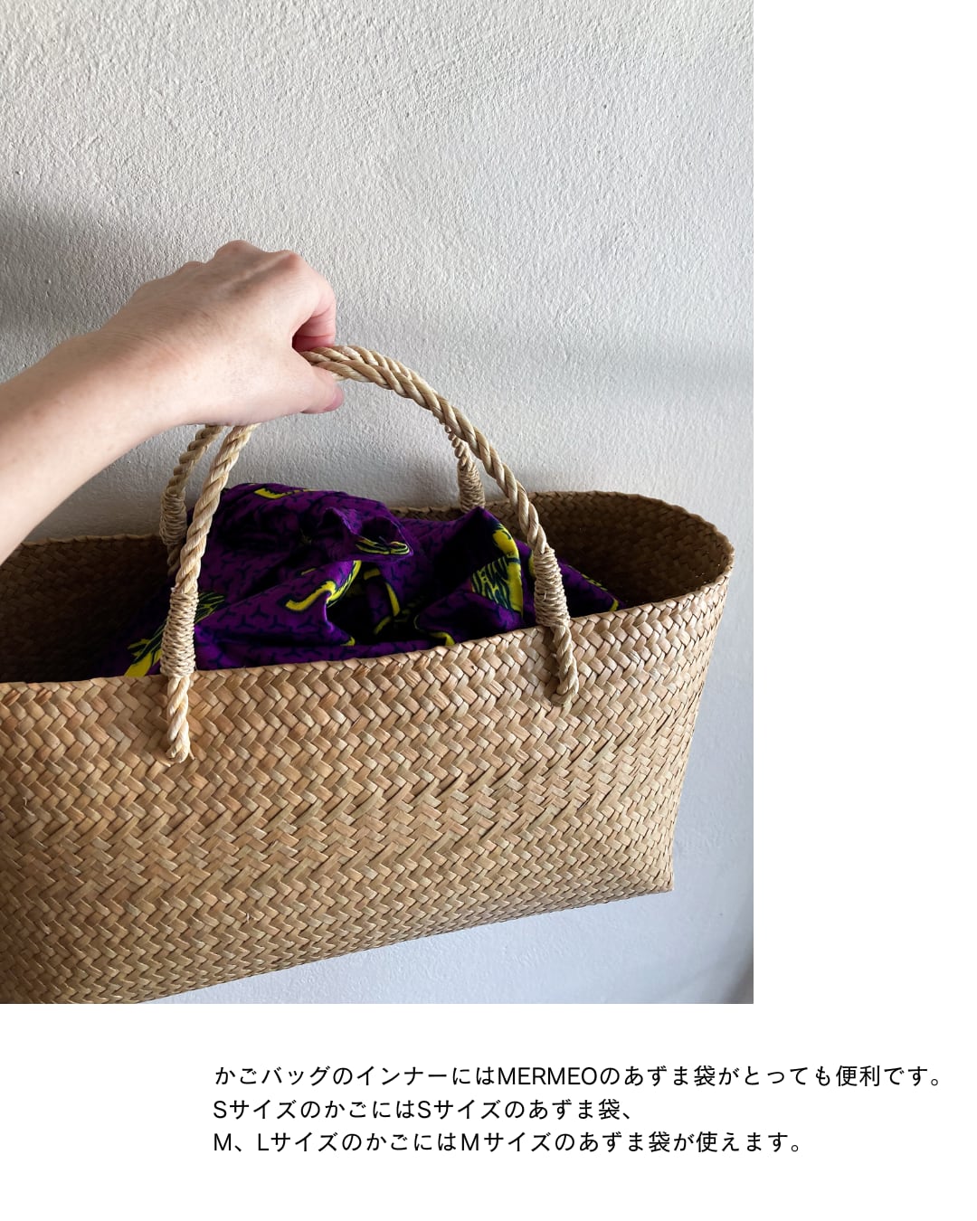 MERMEOのカゴは、タイ南部の農家さんがひとつずつ手編みした温もりのある手仕事品です。自然素材ゆえの以下の特性をご理解いただいた上でのご購入をお願いいたします。