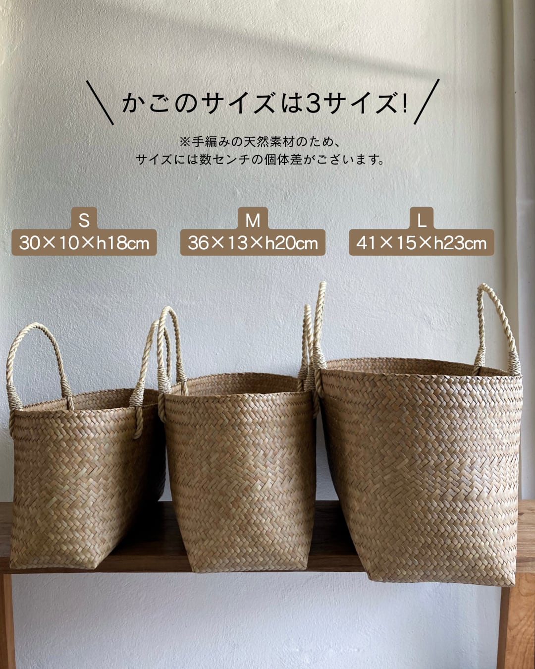 ※手編みの天然素材のため、サイズには数センチの個体差がございます。